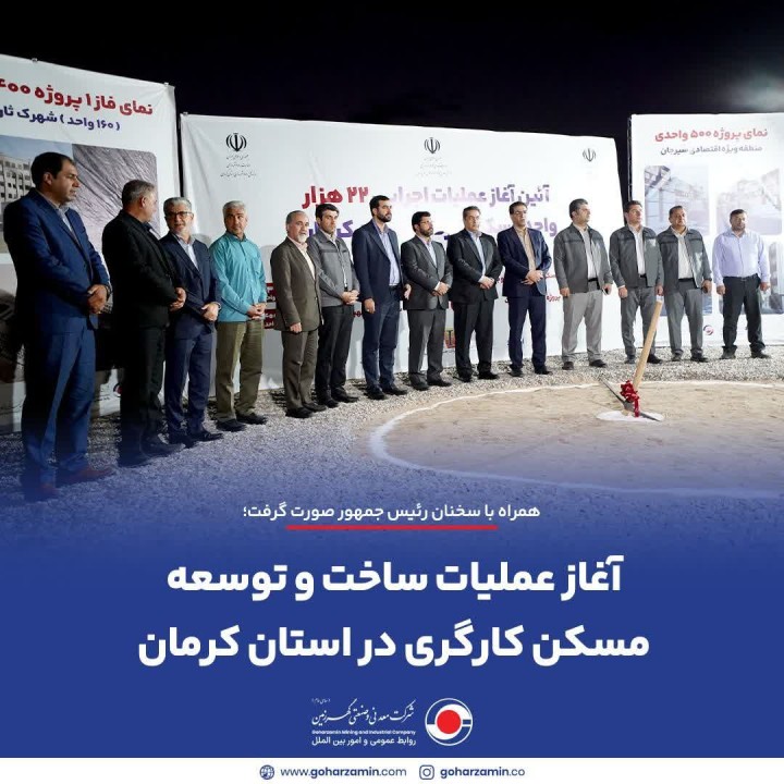 عصر امروز آیین کلنگ زنی تعاونی مسکن شرکت معدنی و صنعتی گهرزمین در منطقه ویژه اقتصادی سیرجان با سخنان رئیس جمهور از طریق ارتباط تصویری و توسط مدیرعامل این شرکت و جمعی از مسئولین انجام شد.