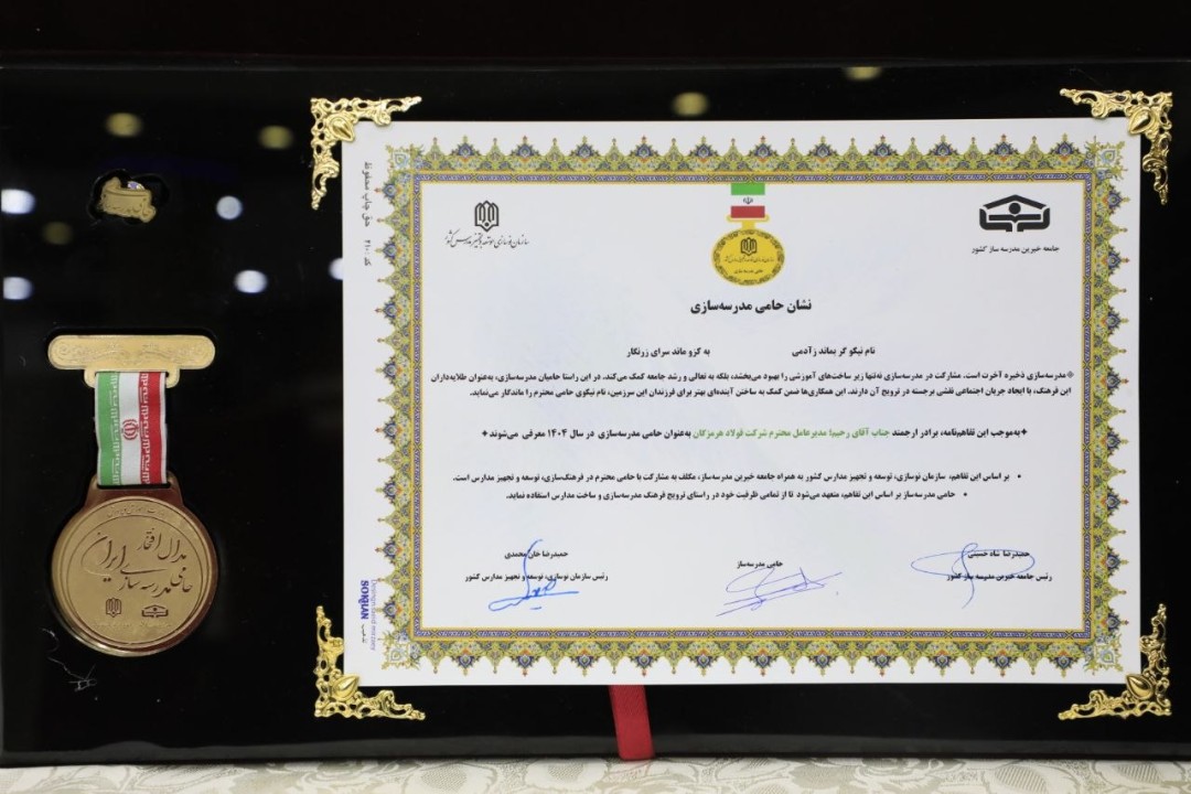 دریافت نشان حامی مدرسه‌سازی در سال 1404 توسط فولاد هرمزگان