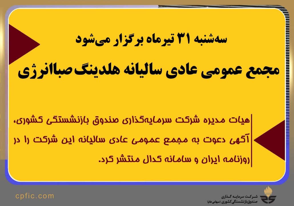 به گزارش روابط عمومی هلدینگ صباانرژی، متن  آگهی مجمع عمومی عادی سالیانه شرکت سرمایه‌گذاری صندوق بازنشستگی کشوری به شرح ذیل است: