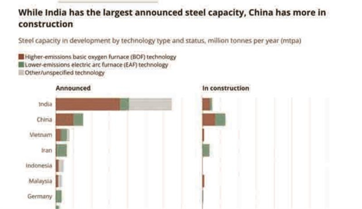 گسترش ظرفیت در هند، تمرکز قوی بر فولاد سبز و کربنزدایی را تحت «مأموریت ملی فولاد سبز» که اخیراً راهاندازی شده، ادغام کرده است. این مأموریت، کاهش انتشار کربن در هر تن فولاد و افزایش استفاده از فناوریهای کمکربن مانند آهن اسفنجی مبتنی بر هیدروژن (DRI) و فولادسازی با کوره قوس الکتریکی (EAF) را هدف قرار داده است. در حال حاضر، این صنعت تقریباً 2.65 تن دیاکسید کربن به ازای هر تن فولاد منتشر میکند که حدود 20 درصد بالاتر از میانگین جهانی است و عمدتاً به دلیل مسیرهای کوره بلند مبتنی بر زغالسنگ (BF-BOF) است.